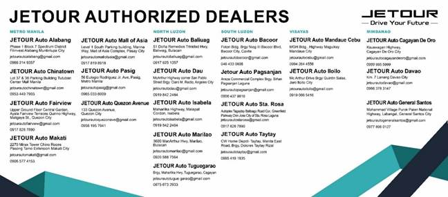 For more information about JETOUR Auto Philippines Inc., visit our website at https://jetourautophilippines.com/.